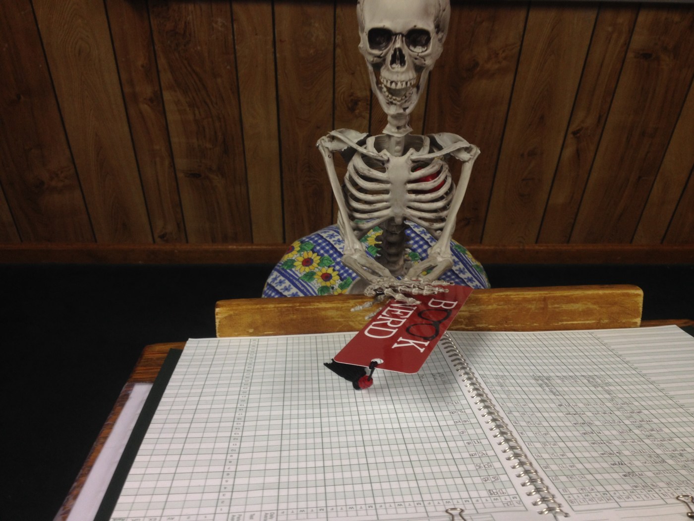 Meet Buddy the Skeleton. Yes, he’s a discount Halloween decoration, but from what I can tell he’s almost anatomically correct – the only discrepancy I’ve found is fusing in the knees. Anyway, I just couldn’t resist taking a few humorous photos – and my student found it hilarious, too. It was a good way to wind down after a test.