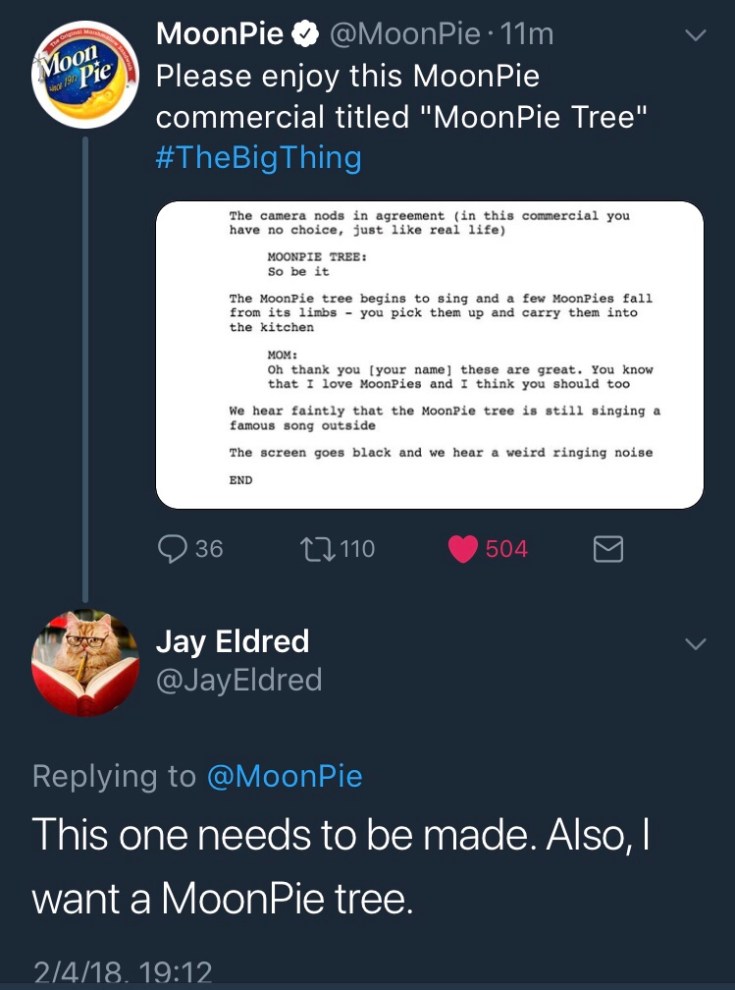 I had a great interaction with the person who runs the MoonPie twitter account.