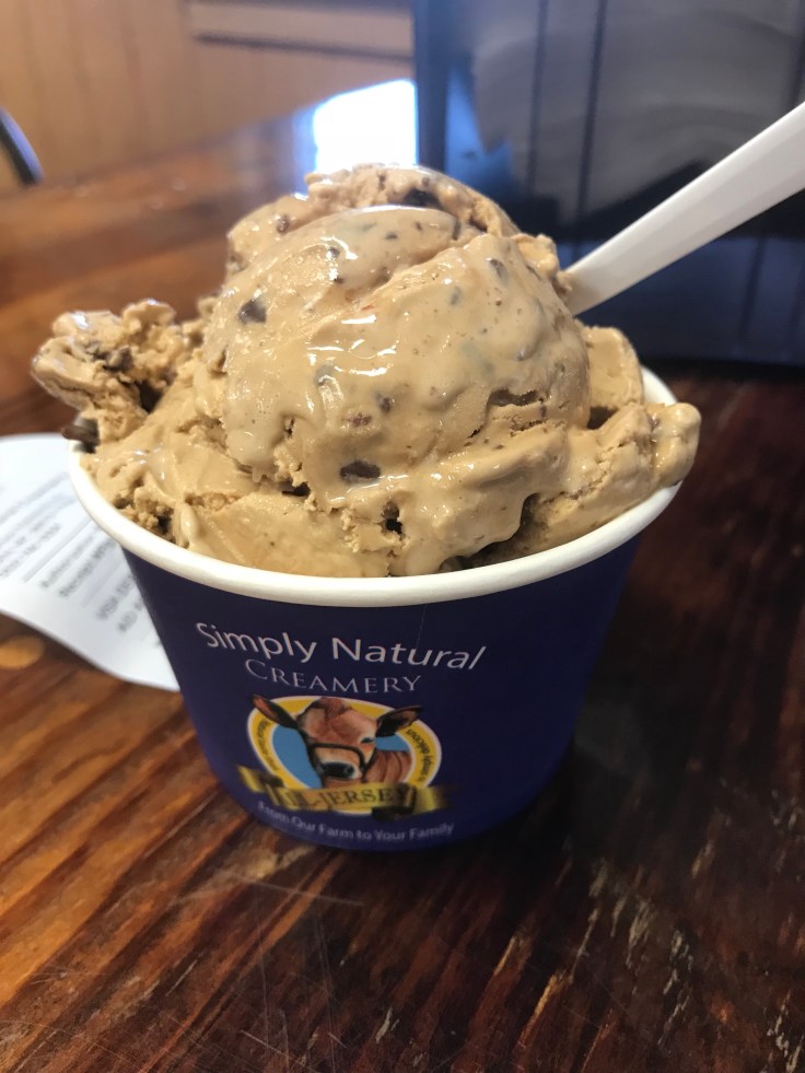 That ice cream is a scoop of coffee toffee and a scoop of cookie dough. Yum!
