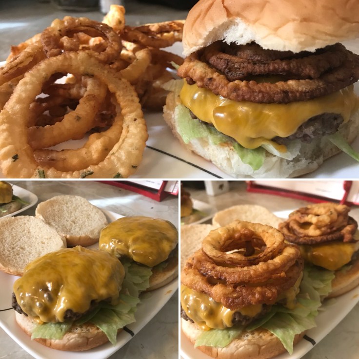 I’d avoided this burger because I’d never fried anything in oil before and usually my body doesn’t much care for onions, though my tastebuds love them. However, I was in the mood for a challenge and took it on.