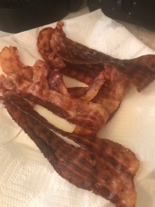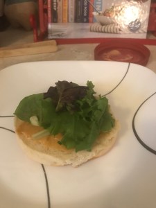 I also fried up some bacon to go on the burger and picked up some spring mix leafy greens for everything to rest on.