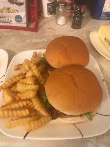 Krystal tolerated this burger. She hasn’t been feeling well, which affects the tastebuds, but I’d forgotten she isn’t a fan of chèvre’s texture. I should have stuck with feta, which I know she likes. She gave the burger 3.5 stars.