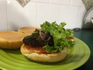 - Serve on a bun with condiments of choice (I used spring mix greens and mayo)