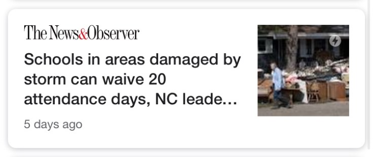 Yes, believe it or not, we still have today off. The state government wrote off nearly 20 days for Hurricane Florence and we’d actually already made up 3 days, so our vacation days remain intact. Some districts aren’t so fortunate; one county over from us doesn’t yet know what to do as two schools were completely destroyed.