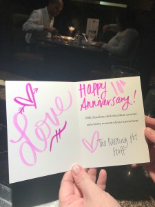 Thursday Krystal and I celebrated our tenth anniversary! We went to the Melting Pot, our traditional anniversary restaurant.