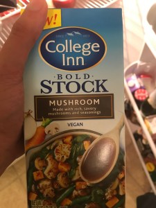 - 3 cups stock; I was lucky and found mushroom stock