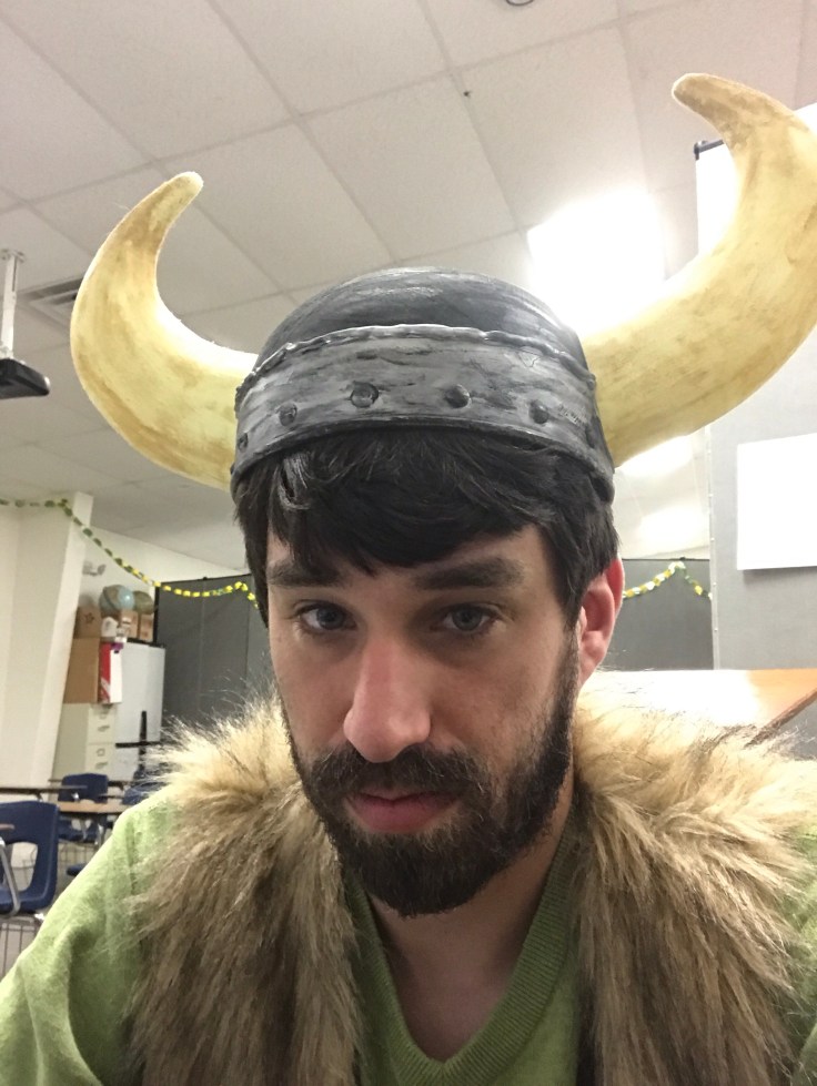 Monday kicked off our school Spirit Week. We had Homeroom Wars, where my homeroom class had all earned a tardy pass in a fundraiser and all used them on this day to be “invisible” for the first hour. Tourist Tuesday saw me break out my German shirt, sweatshirt, and scarf. For “We Need a Hero” Wednesday I went as Matthew Murdoch/Daredevil. Only a few people knew who I was supposed to be. Throwback Thursday I went as a Viking, which was my Hiccup cosplay sans Toothless. Fierce Friday I wore my cross country uniform. Overall it was a good week: my homeroom won the Spirit Stick twice and was the overall winner, so we get the stick for the rest of the year!!