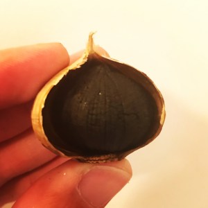 For the first time in a long time I’m back to a cookbook recipe, having found black garlic at a local store.