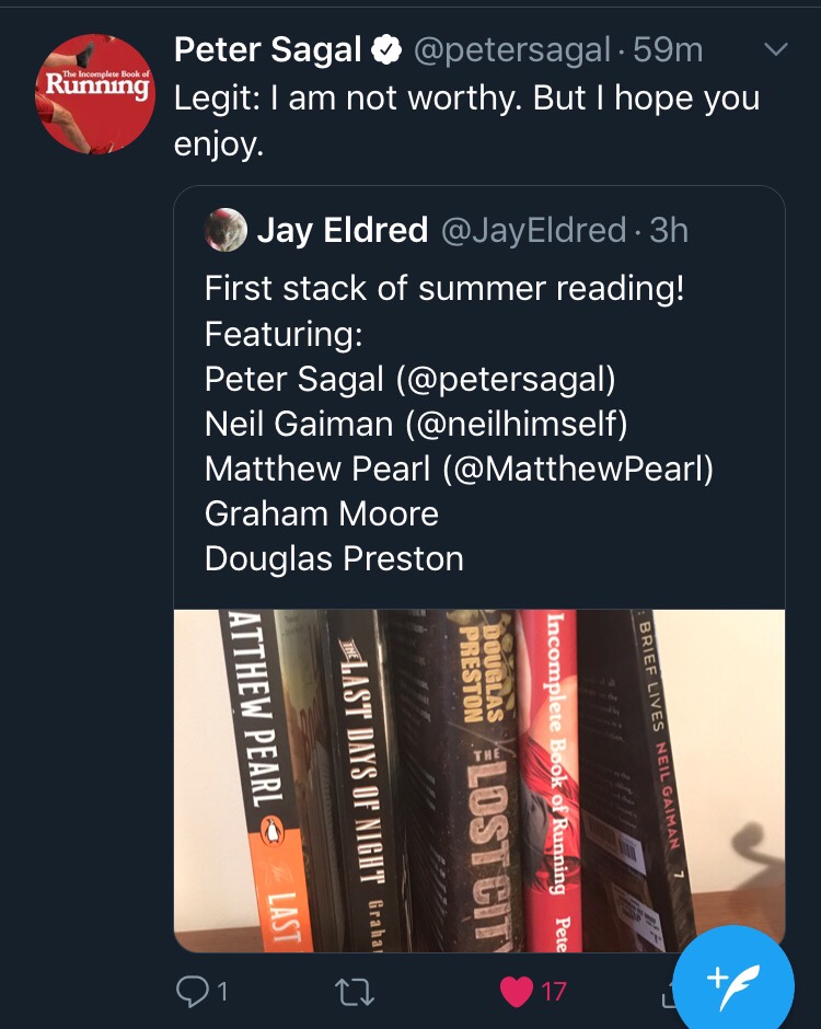 I’m sorry, but unless you follow me on Goodreads you don’t know what I’m reading. I tactfully informed them of the books I’d just finished reading and the books next on my list, all of which would satisfy their demands. But again, why even bring that up? I have almost three months of summer; I’m going to read a lot more than those five or six books. In fact, I’ve already read two of them since sending out that tweet.
