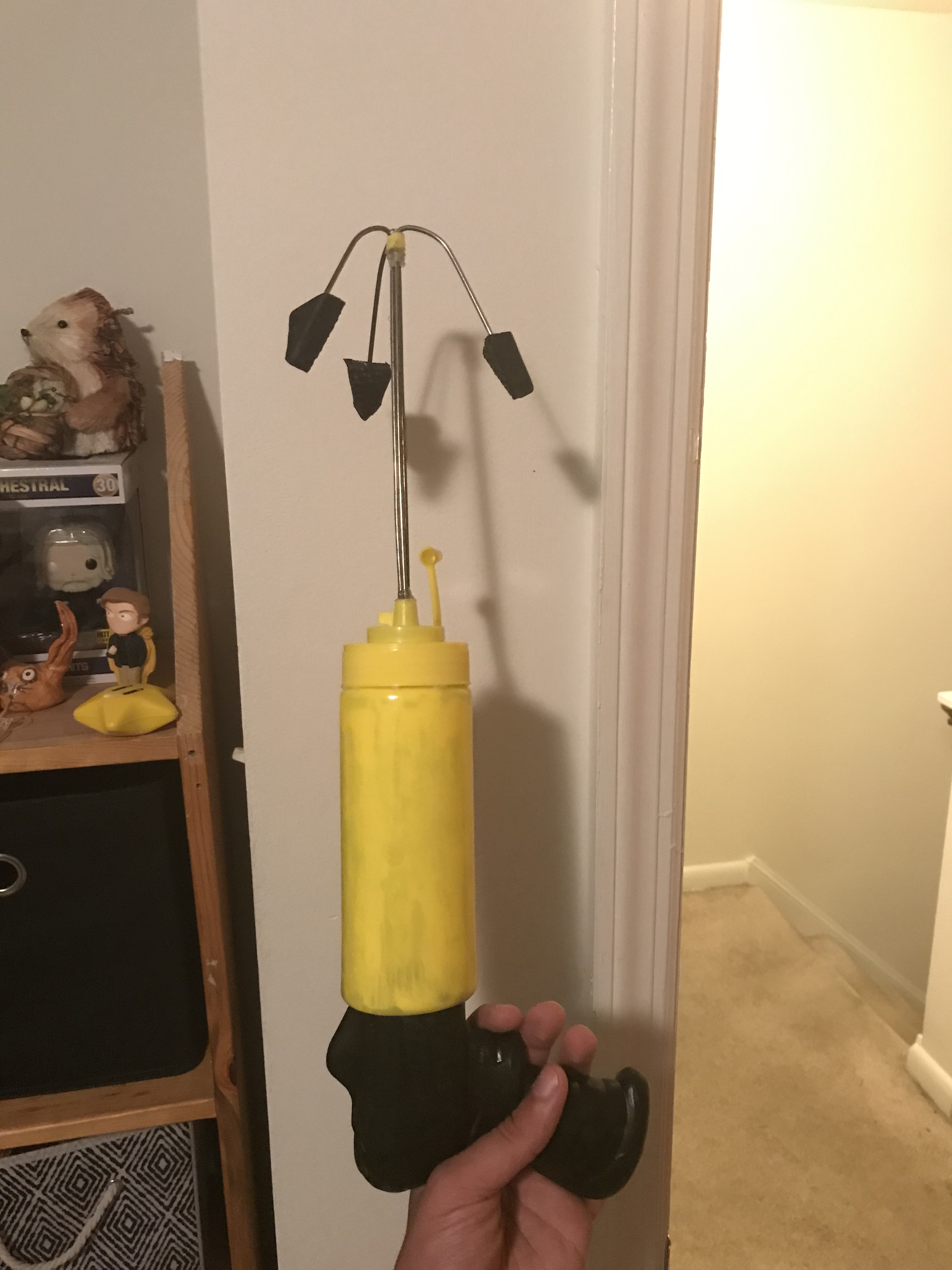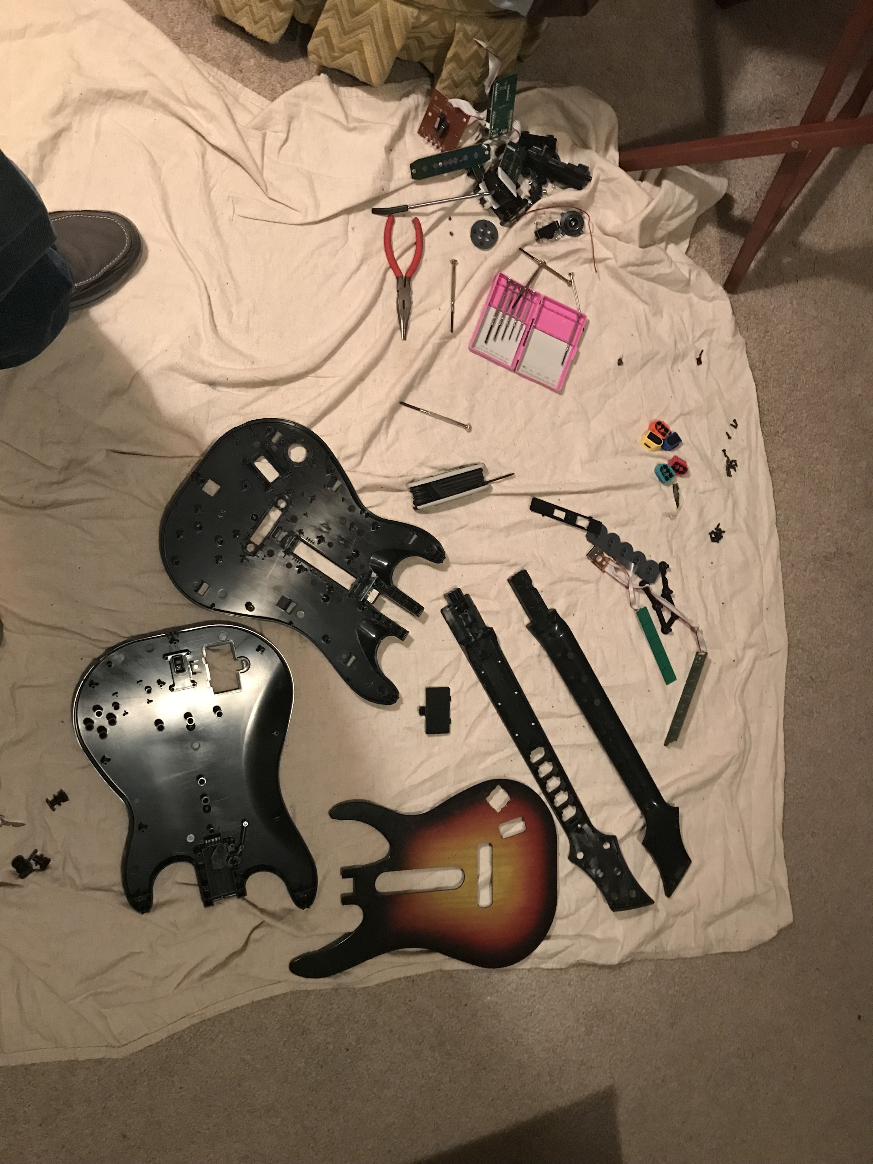 I’ve made progress on this years’ cosplay. There’s a lot of small-ish items to be done. I took apart, gutted, and reassembled a Guitar Hero guitar. I also designed a grappling hook, which Krystal improved and built (without me asking her!).