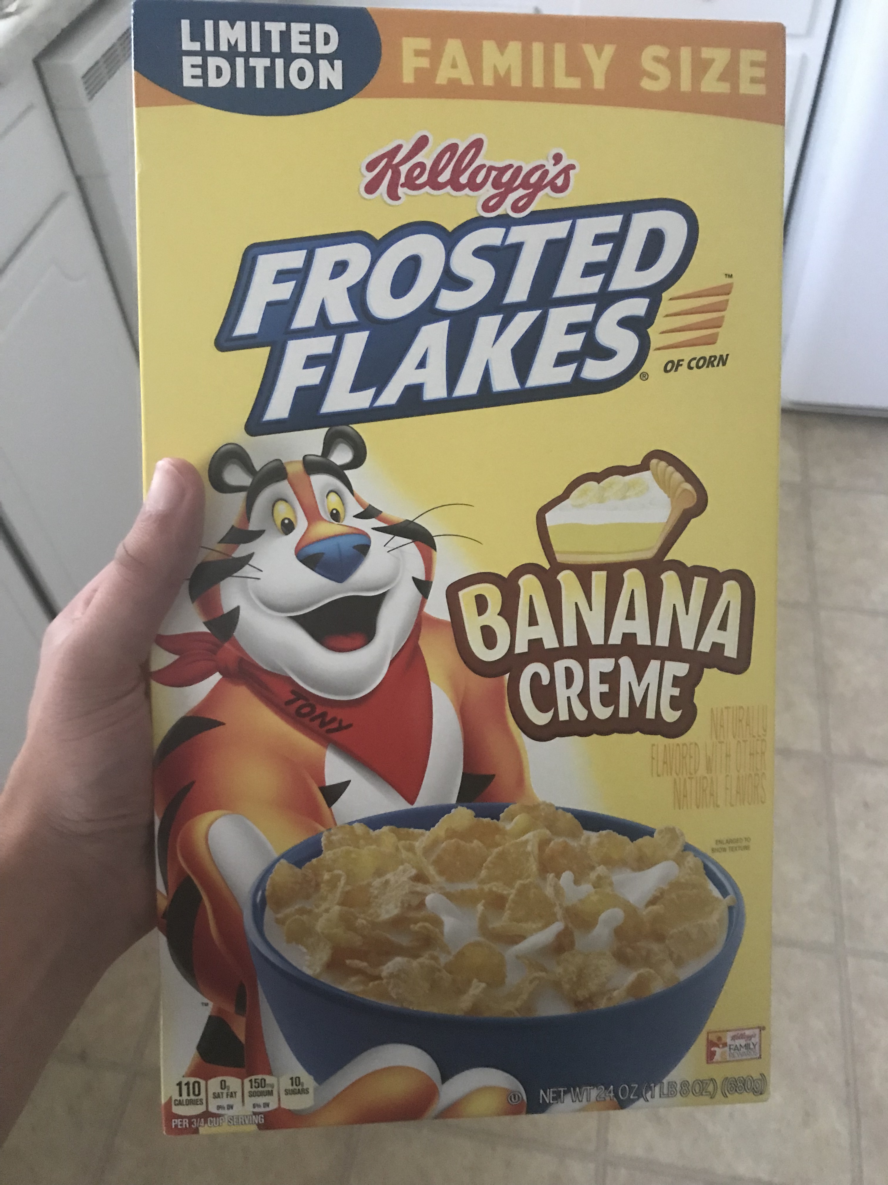One thing I did buy on purpose? This limited edition box of Banana Crème Frosted Flakes: