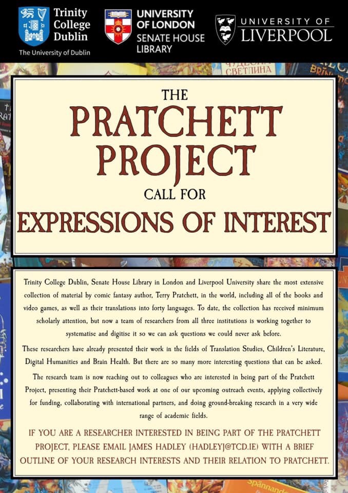 Last weekend one of my friends posted that Trinity College in Dublin, Ireland and coordinating what’s known as The Pratchett Project, an academic endeavor to promote and preserve the work of Terry Pratchett through academic research and writing.