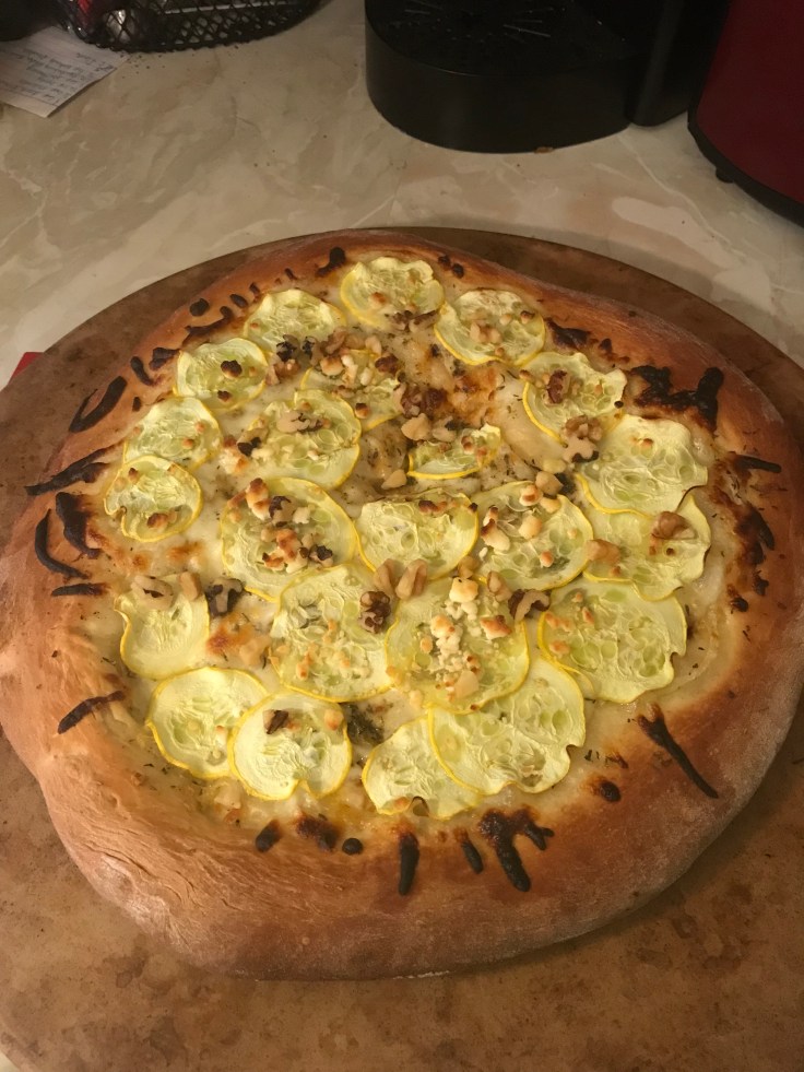 Cooking continues to go swimmingly. For the second straight week I planned meals and bought groceries for a week. This week’s highlight was the Summer Squash Pizza: