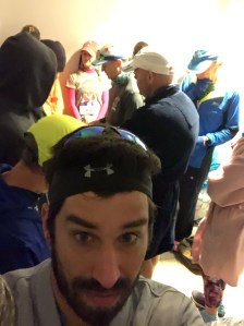 Here I am on the shuttle ready to make some OBX Marathon friends: