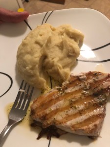 Tonight’s supper: Sicilian-style swordfish and curry mashed potatoes