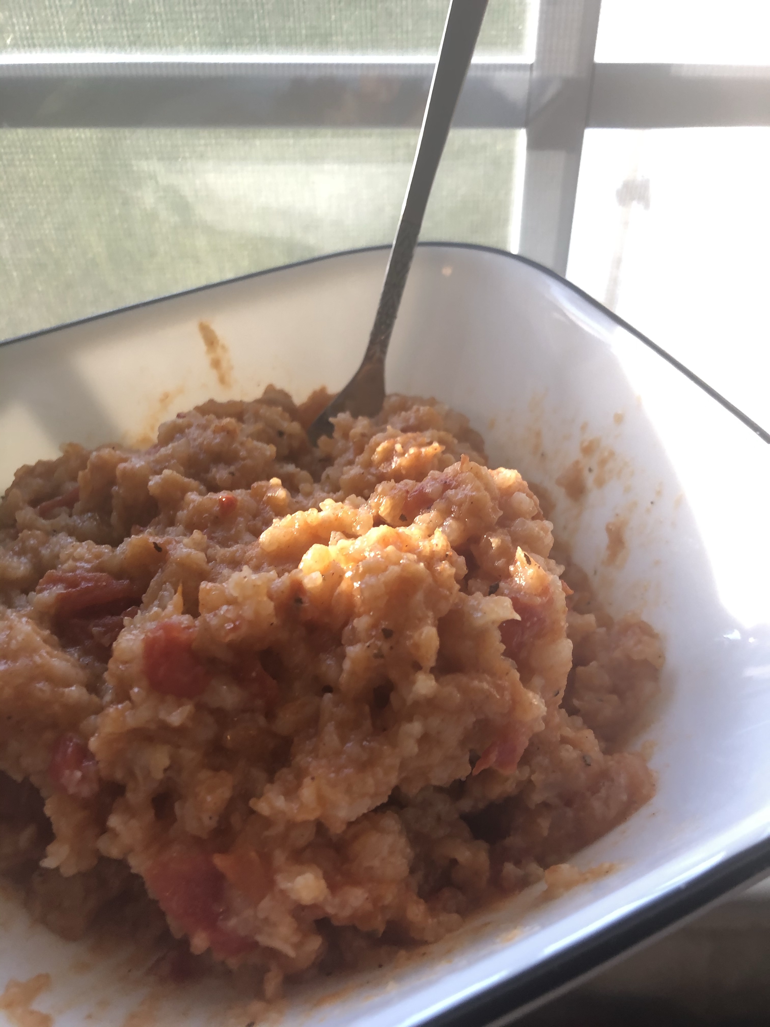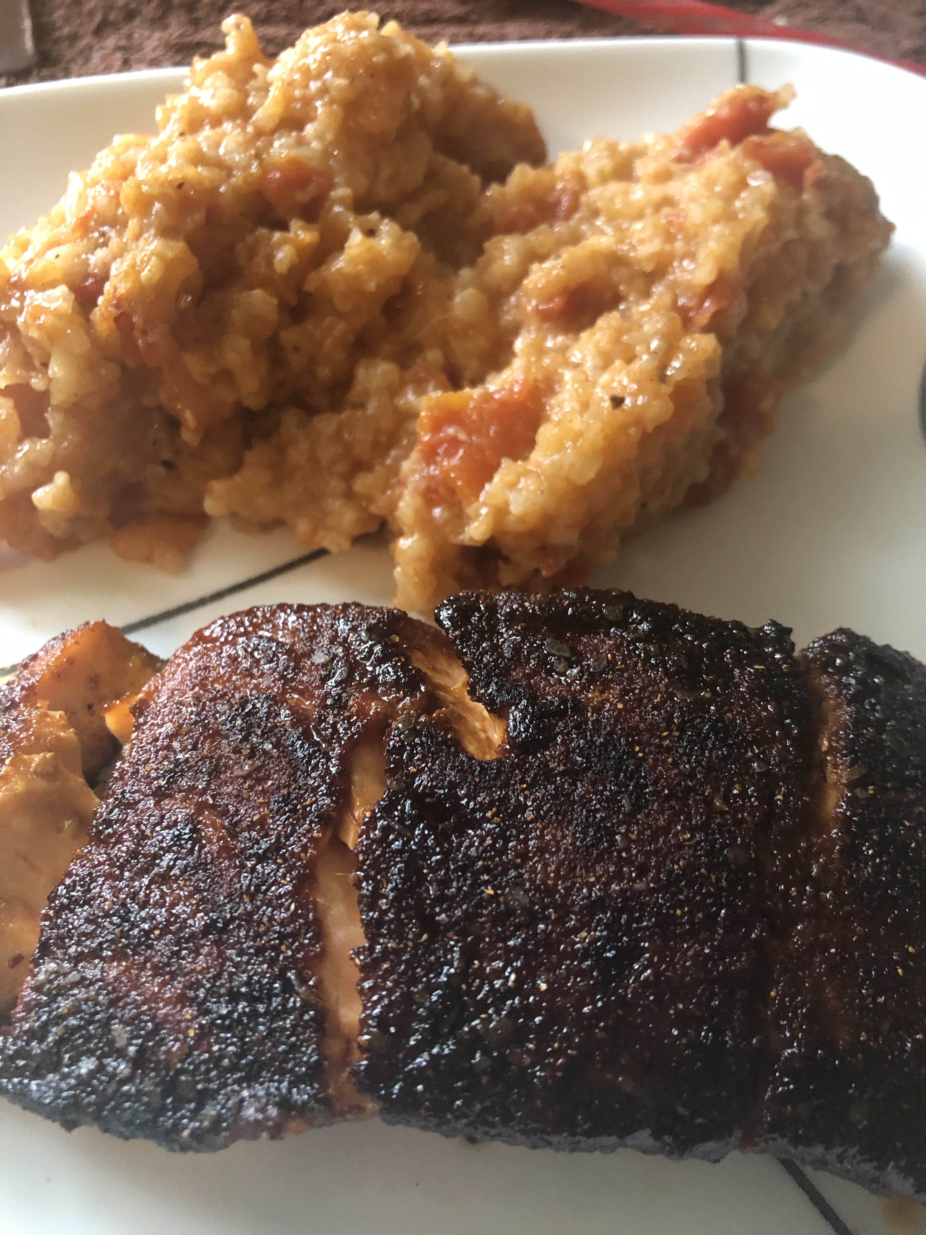 I made tomato rice using blueberry tea as a โsecret ingredientโ and later blackened some salmon to go with that rice