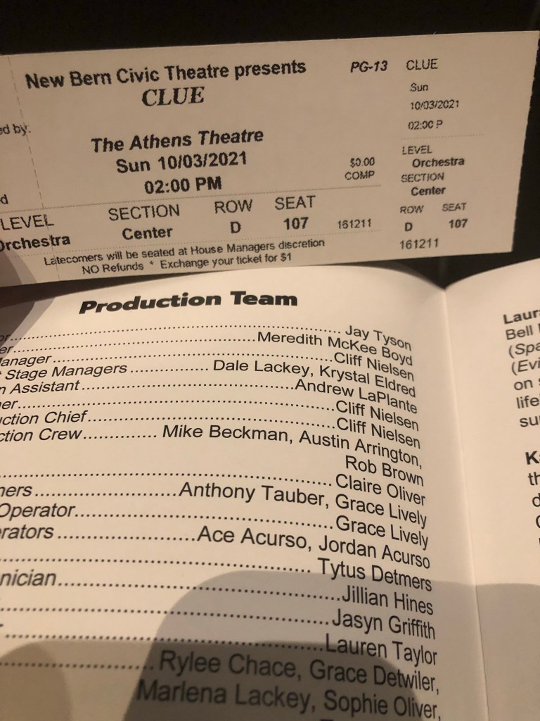 Krystal did a fantastic job as an assistant stage manager of our local production of CLUE. Everyone was singing her praises, and she’s signed on to be THE stage manager of the upcoming production of Rock of Ages.