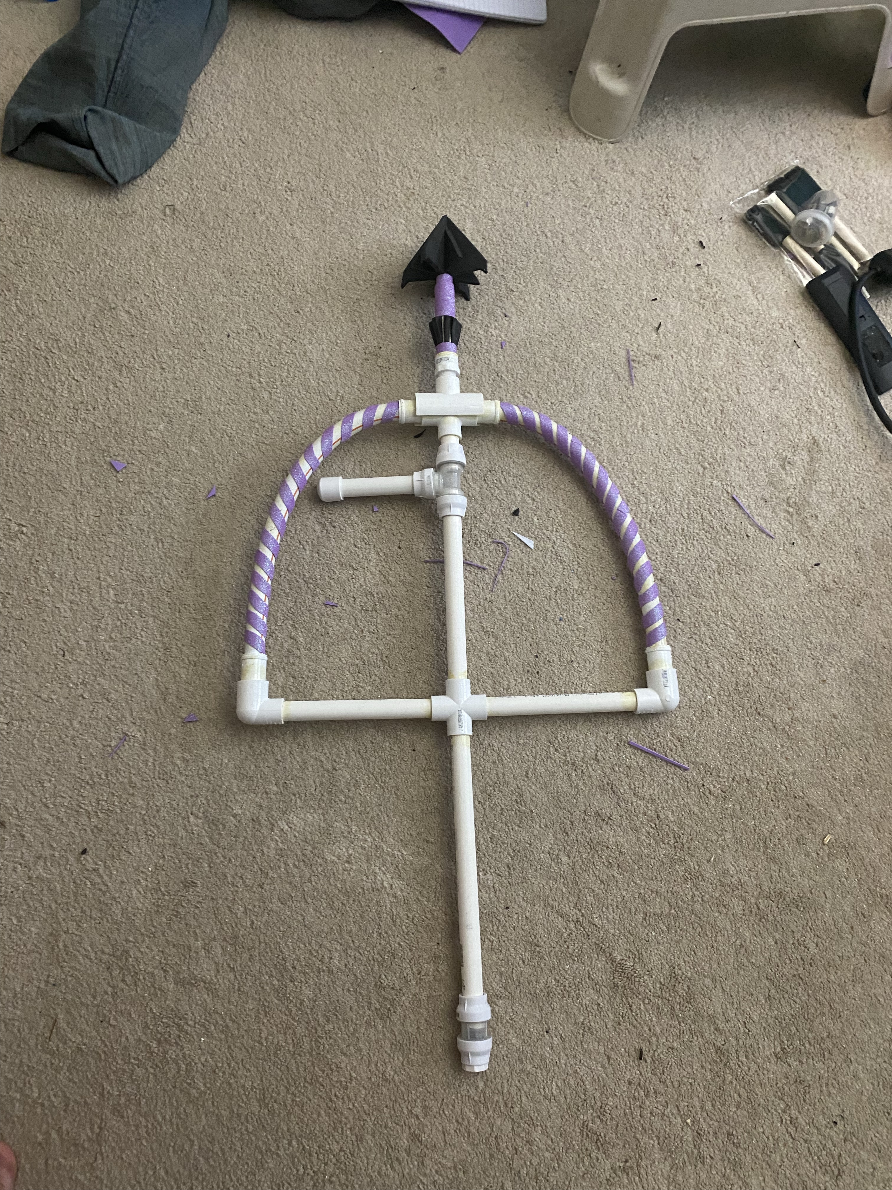 The crossbow was designed by me and built by Krystal. In out game, Garrett has the ability to shrink ballista bolts and fire them as if they are regular crossbow bolts. Hereโs some production photos: