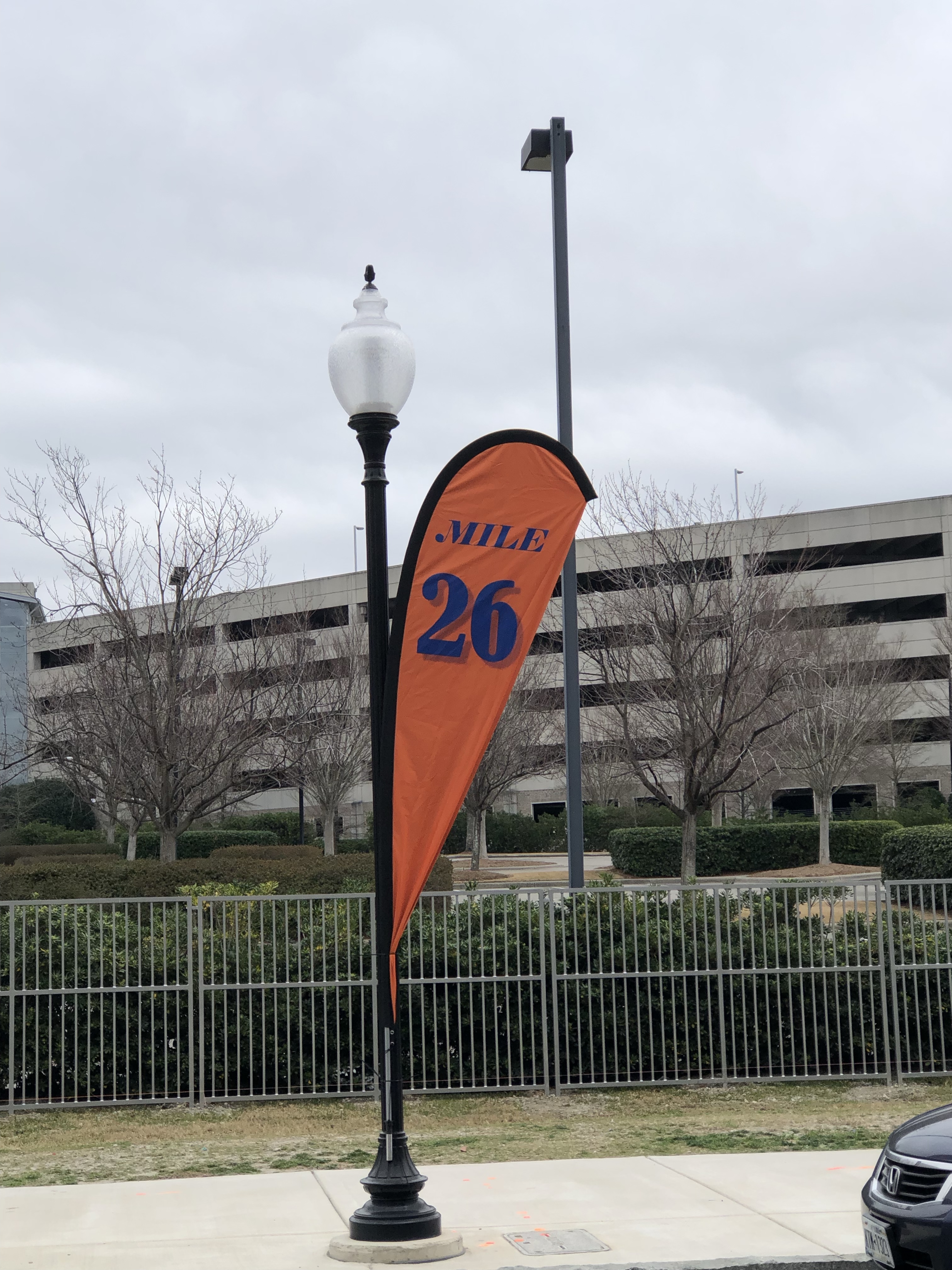 Around mile 19 or 20, after Denise cheered us on again with a group of strangers she’d shared our names with, we were both feeling rough and decided to walk. At mile 24 I tried running again as Charlie was feeling up for trying, but my left knee protested. We decided to walk until we saw the mile 26 flag.