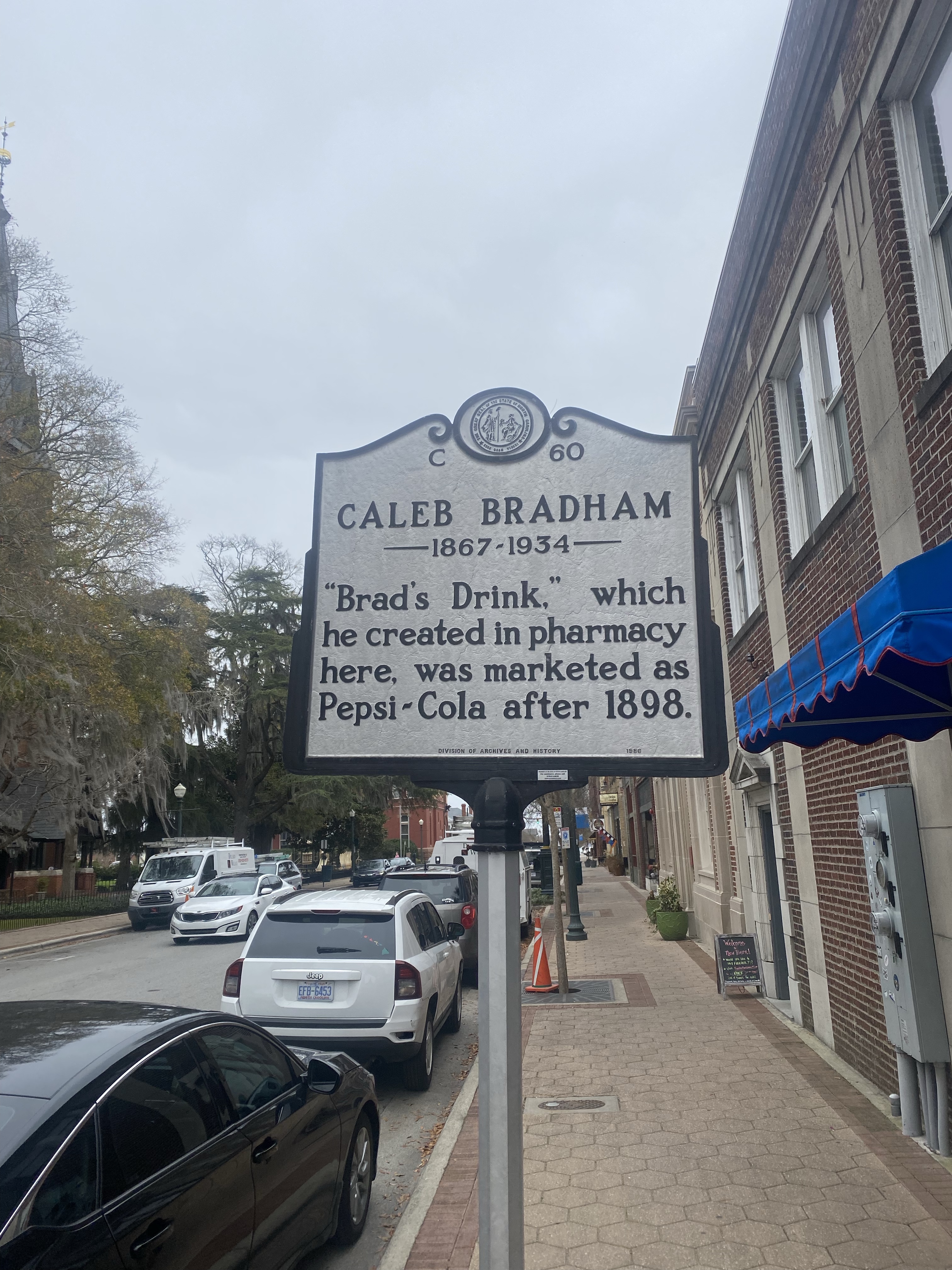 So, now its 2022 and Charlie and Denise are here. We visit my workplace (huzzah it was Panera day!) and then drove/walked around town seeing the sights: the birthplace of Pepsi, the theaters where Krystal has worked on plays, the exterior of Tryon Palace and Mr Tom’s house, the oldest Episcopal church in North Carolina, and the like. We ate at Morgan’s Tavern for lunch (and got a to-go plate for Krystal) and I drove around my usual running route before heading home.