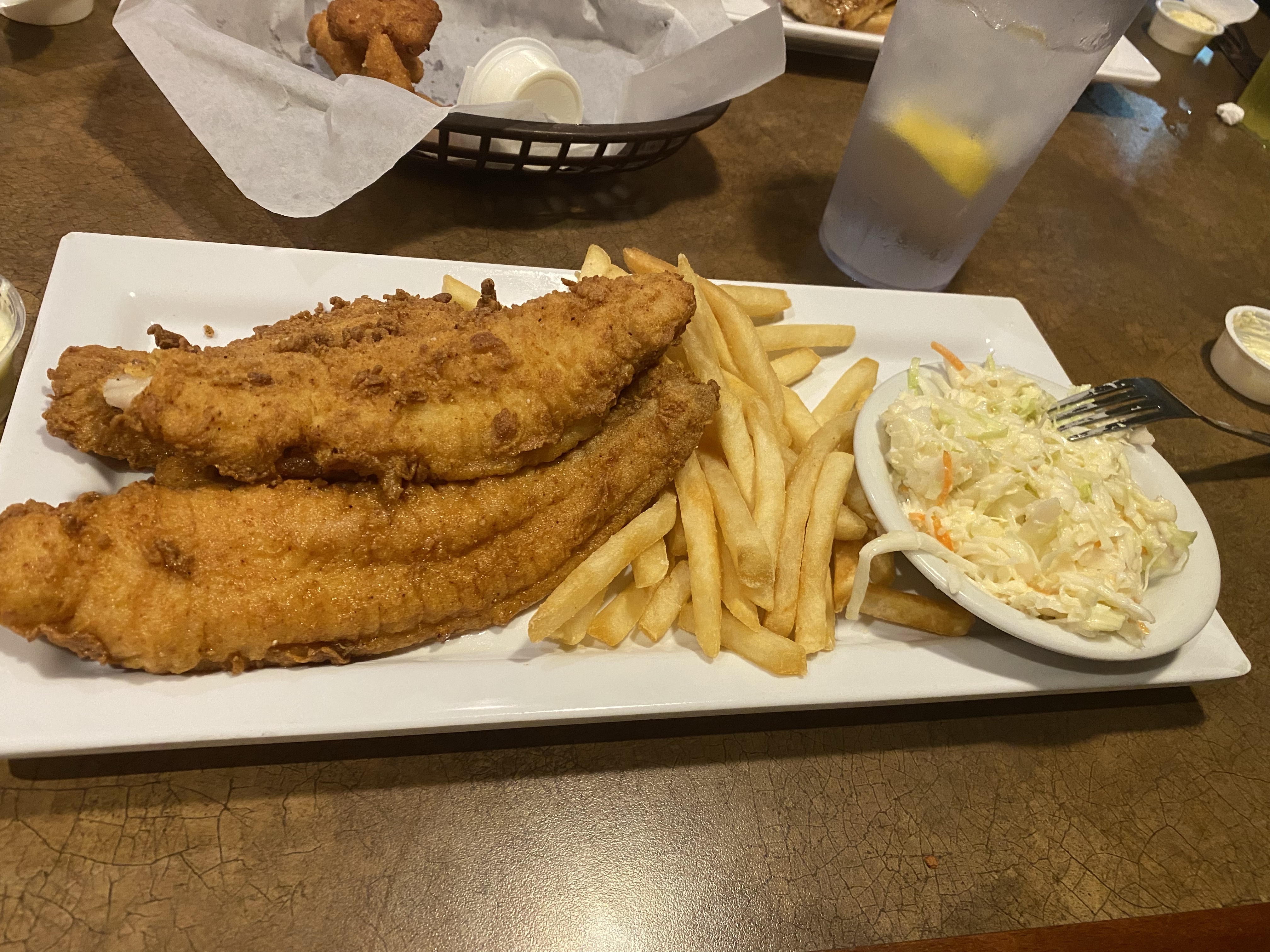Then we drove the course backwards as best we could (some parts were distanced from public roads) before visiting the USS North Carolina. Afterwards, we checked into the hotel and find a place for dinner: The Boathouse, where I had catfish that was fried perfectly.
