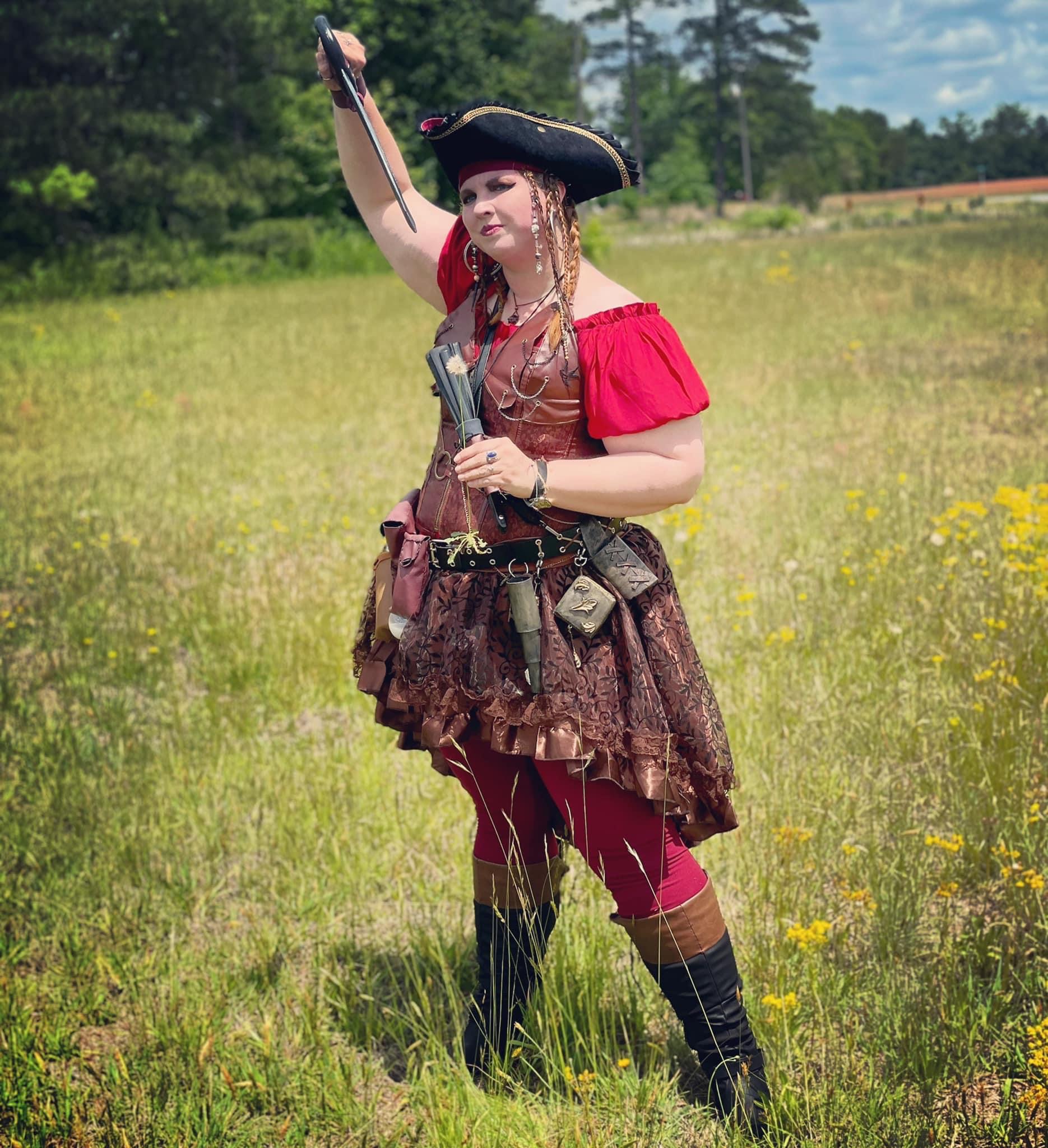 Krystal went as a pirate. She made all her own props and jewelry and got more than a few compliments and even more looks.