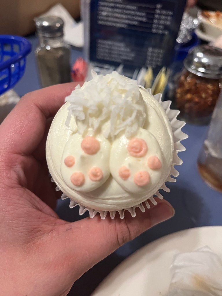 But I got all the communications running like they should and then went to the afternoon exercises and they werenโt bad at all and in fact I started to feel a bit better and then I remembered that Thursday was the Day of Three Birthdays: my mom, my father-in-law, and my oldest nephew all have birthdays on the same day (different years of course). I text my nephew, called my mom, and went out for supper with my father-in-law and other family. I had a Reuben sandwich and a cupcake, and come to find out my mom had a Reuben, too! I swear we didnโt coordinate that.