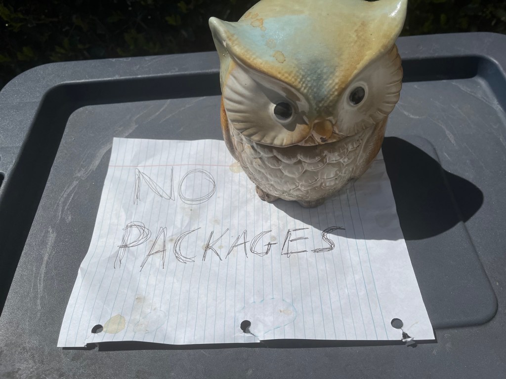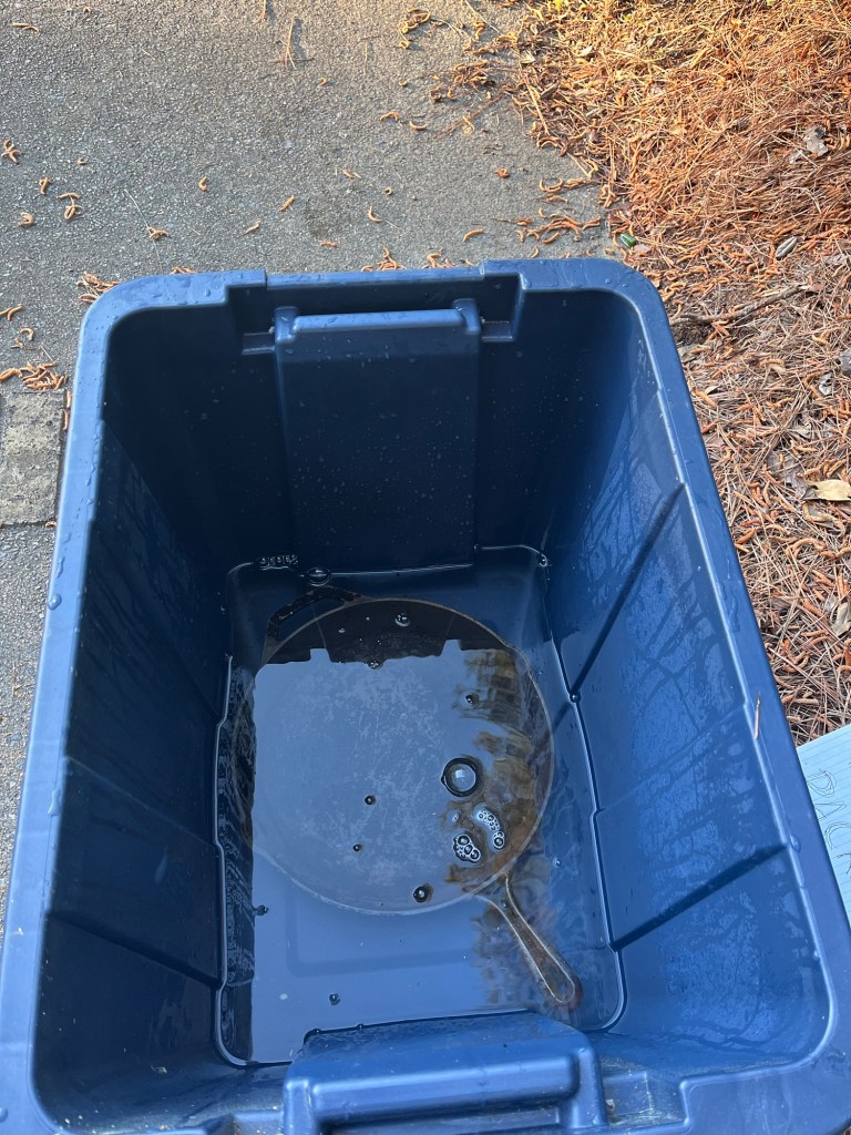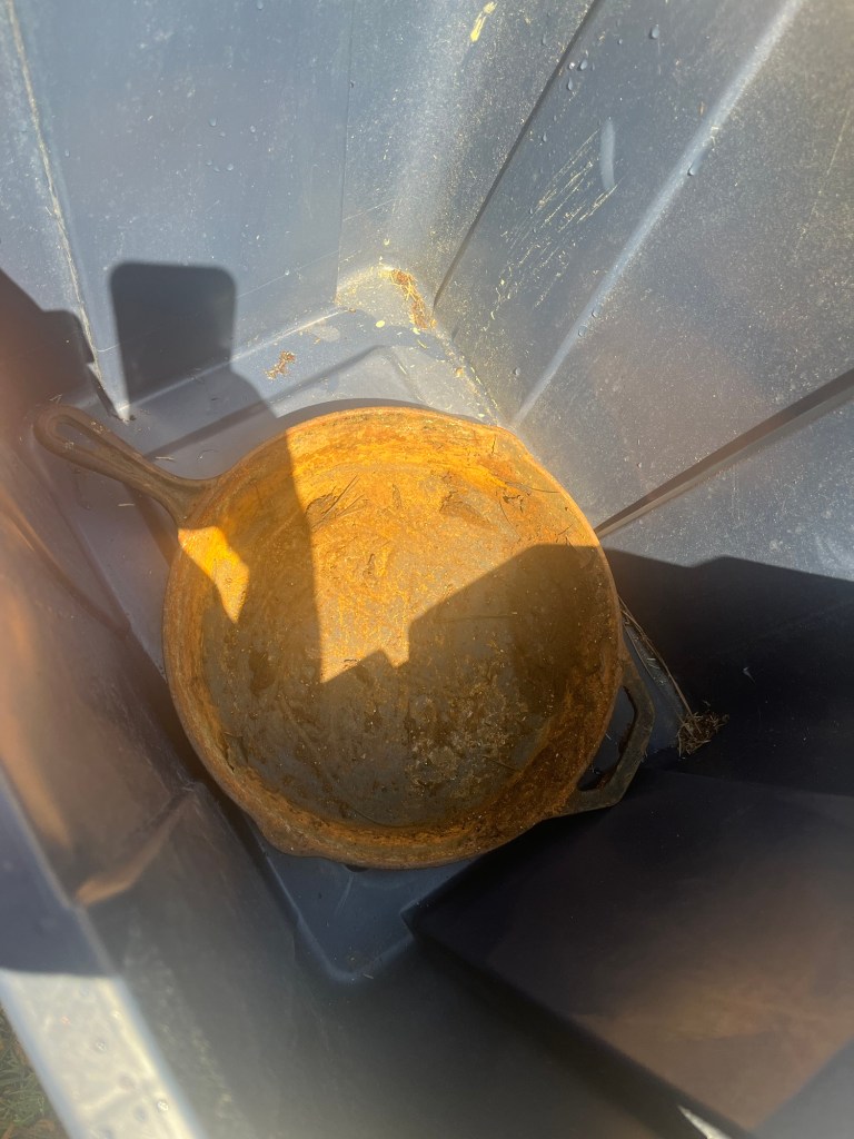 I forgot to say that the only tub I had big enough for my cast iron project was the tub we usually use for packages, so I put a note on it saying โno packagesโ and our carrier knocked to make sure we were okay and to check where they should leave things in the meantime – I love our postal carrier.