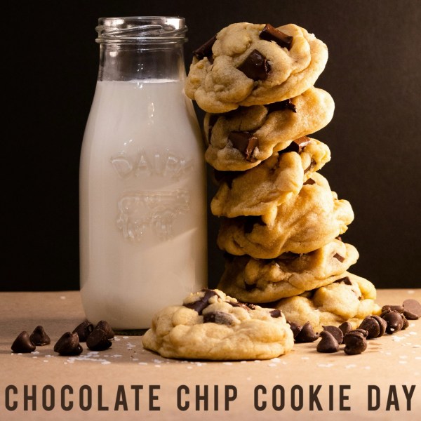 Chocolate Chip Cookie Day! There’s nothing like fresh cookies to bring back warm memories. Whether you like them thin and crispy or thick and chewy and filled with gooey chocolate goodness, enjoy a chocolate chip cookie or two (or three. or the entire sleeve – I won’t judge). Don’t forget the milk!