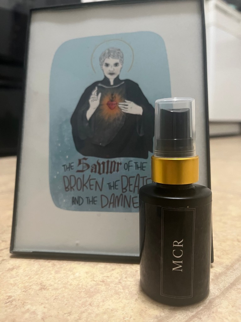 That wasn’t the only package that came recently, either – my latest Mad Labs order arrived, too! I got a 30ml spray bottle of the custom My Chemical Romance scent I ordered last year (and have used up) and a roller of Gertrude Robinson from the Magnus Archives collection. MCR has notes of honey, whiskey, gunsmoke, blood, fire, water, and roses while Gertrude smells like white cedar, wisteria, plum, and vetiver.