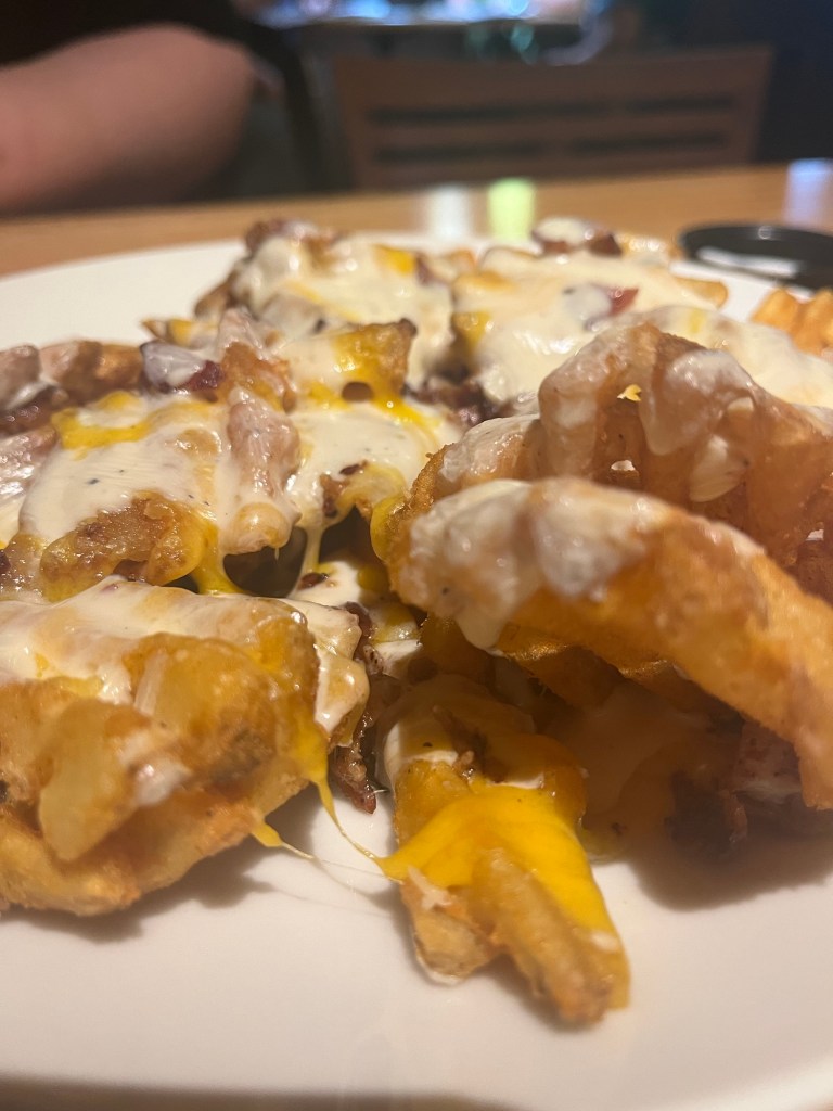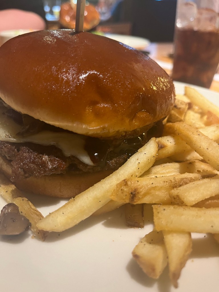 Well, be that as it may, last night I was feeling up for going out to Applebees with Krystal (she had a gift card). We ordered loaded waffle fries and pretzels for appetizers and I had a mushroom Swiss burger and Dr Pepper for my main course/drink.