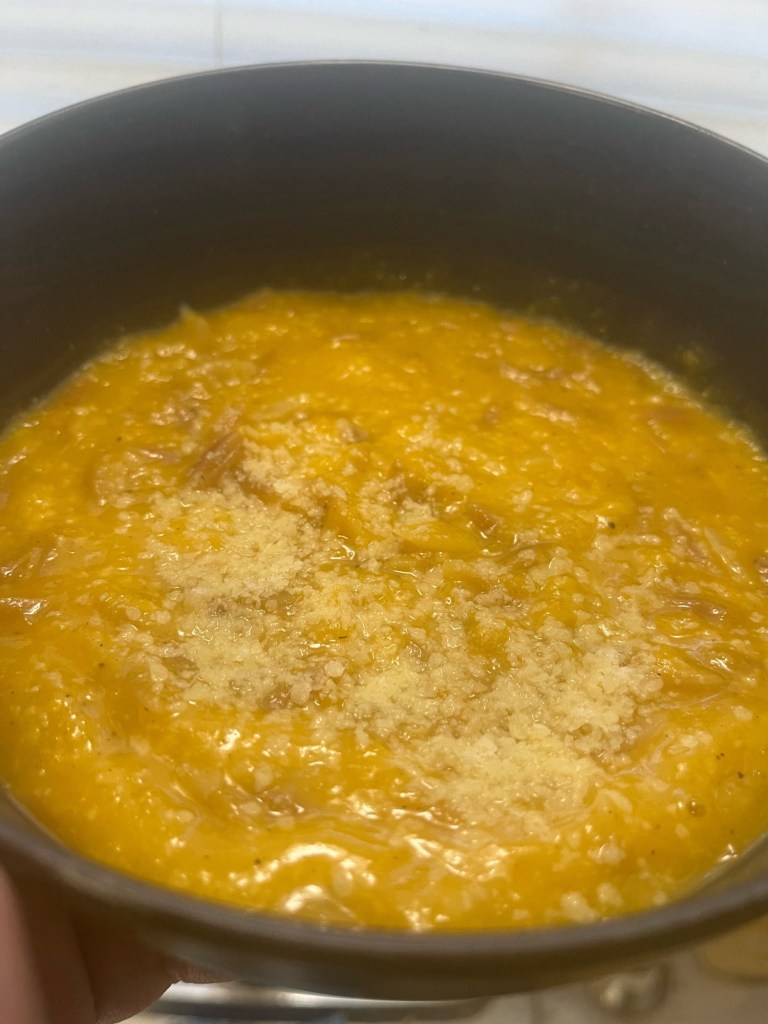 October 6 – I made creamy butternut orzo; Krystal gave me a Yard Crow for our yard. I havenโt put it in the yard – I had designs of filling an empty wine bottle with something and then putting the spike through the cork and using it as an inside decoration, but I donโt have a cork or anything to fill the bottle, so it still sitting on my kitchen table.
