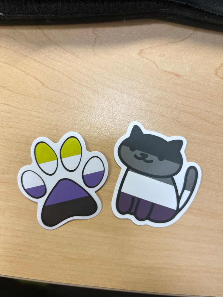 October 10 – there was a mental health and physical wellness fair and I went to a few of the booths. I got pizza and literature on prostate cancer and a few stickers from the Pride booth.
