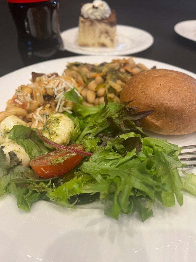 For lunch the first day wound down we went across the street to a plant-based gastropub, where I got a brunch โburgerโ which was really, really good: