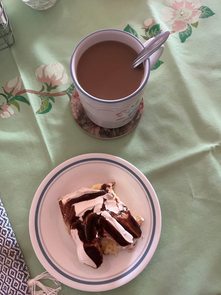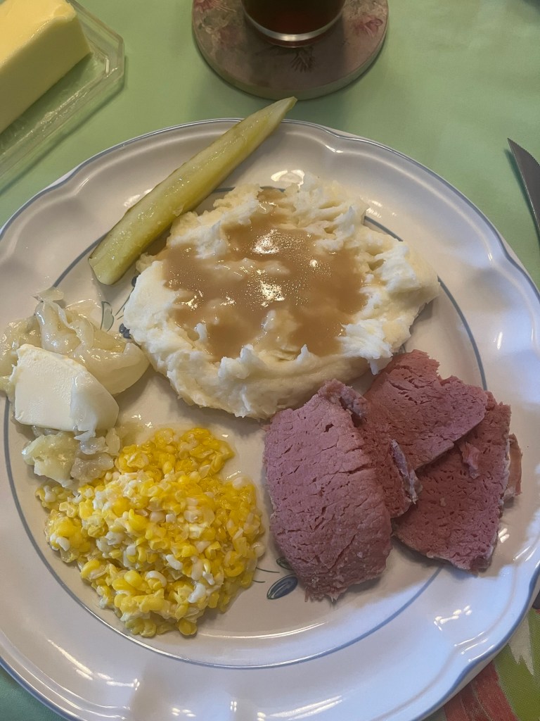 While we were there we enjoyed things like cinnamon buns made by a family friend and corned beef and cabbage and German chocolate cake made by my sister in law Julia and my mom’s rhubarb pie. I even had her write “strawberry rhubarb” so I can have it worked into a tattoo.
