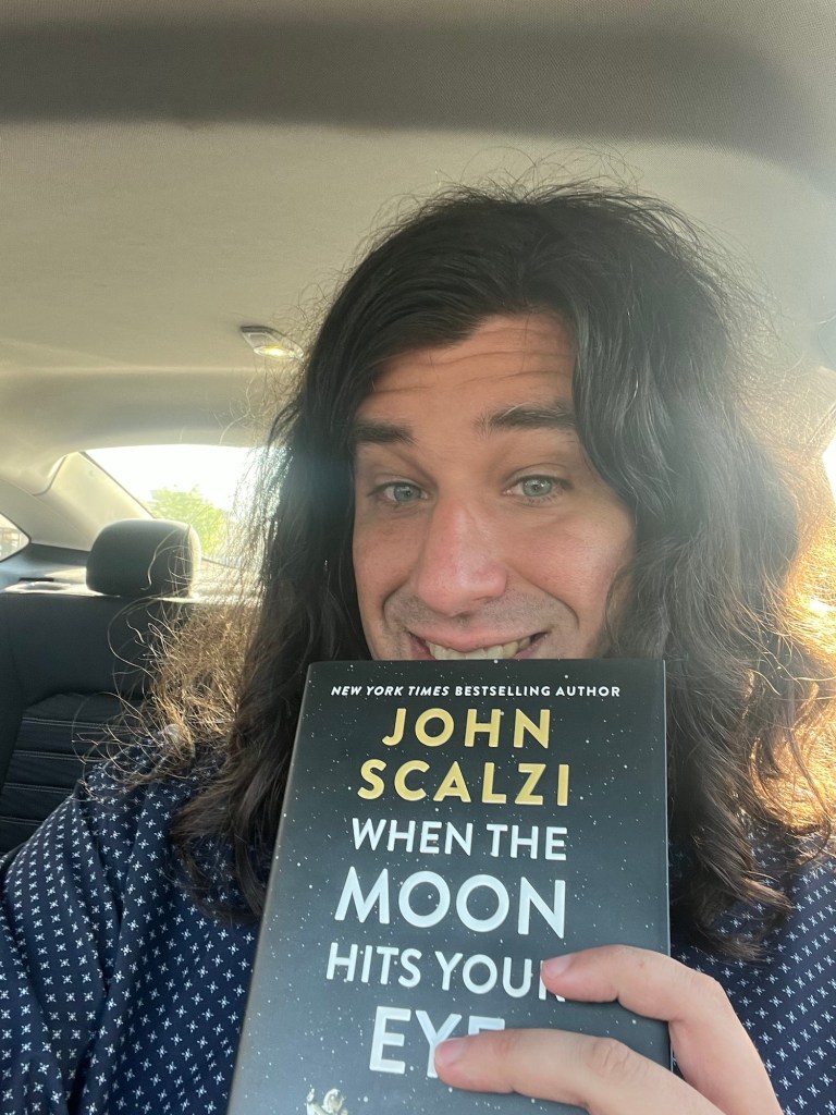 Throughout my travels I’d been looking for John Scalzi’s new book, When The Moon Hits Your Eye, with no success. So on Tuesday after returning home I bought it for myself, and