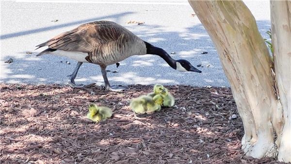 On Tuesday, the goslings hatched. They were not there when I arrived in the morning but I saw Momma Goose moving her eggs around. By lunch there were five baby goslings!