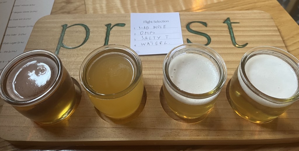 They were all good, but if I had to rank them by my own preference that night, it would be the Hefeweizen, the Kölsch, the Pilsner, then the IPA. But like I said, they were all good and tasty.