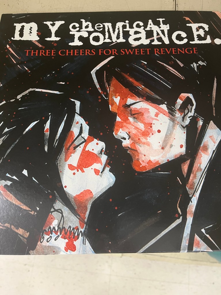 I knew the font style meant it was either Three Cheers for Sweet Revenge or Life on the Murder Scene. I held my breath as I moved other albums out of the way and hoped for Three Cheers – with no shade to Life on the Murder Scene, but I already own that vinyl.