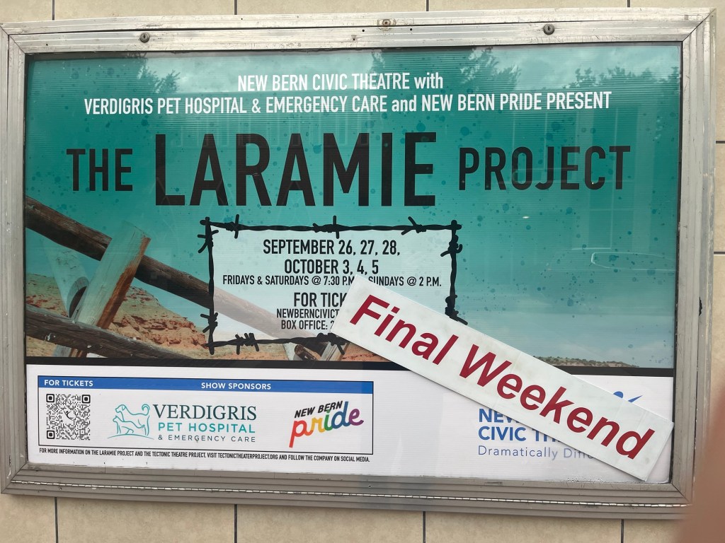 Today’s the last performance for The Laramie Project – I’ve hydrated and caffeinated and I’m cleaning before call time so I can truly rest when all this is over, but I’ve got some time to chat with you.
