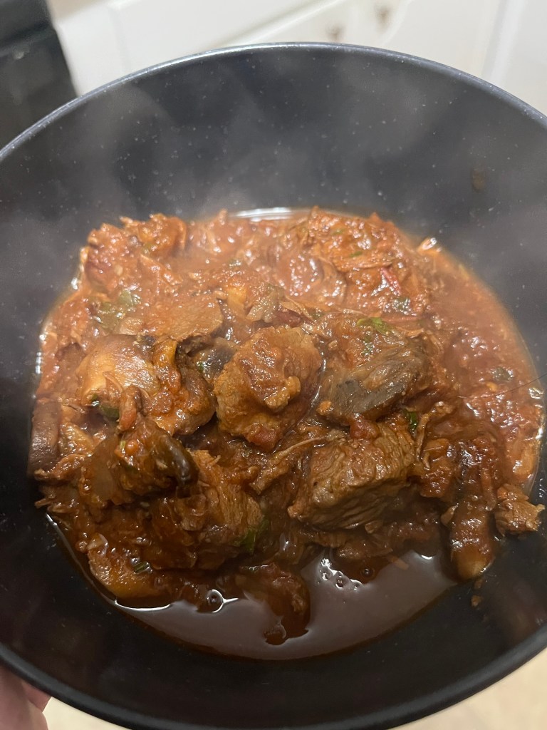 I’ve been having a hankering for mushrooms, so on Friday after work I picked up some stew meat and some mixed mushrooms and all the stuff to make a comforting stew and cheesy bread. For the stew I had wanted to use dried porcini mushrooms, but nobody had them in stock, (which, had I found them, would have ended up in my stock, haha) and so I made use of onion-and-mushroom umami powder.