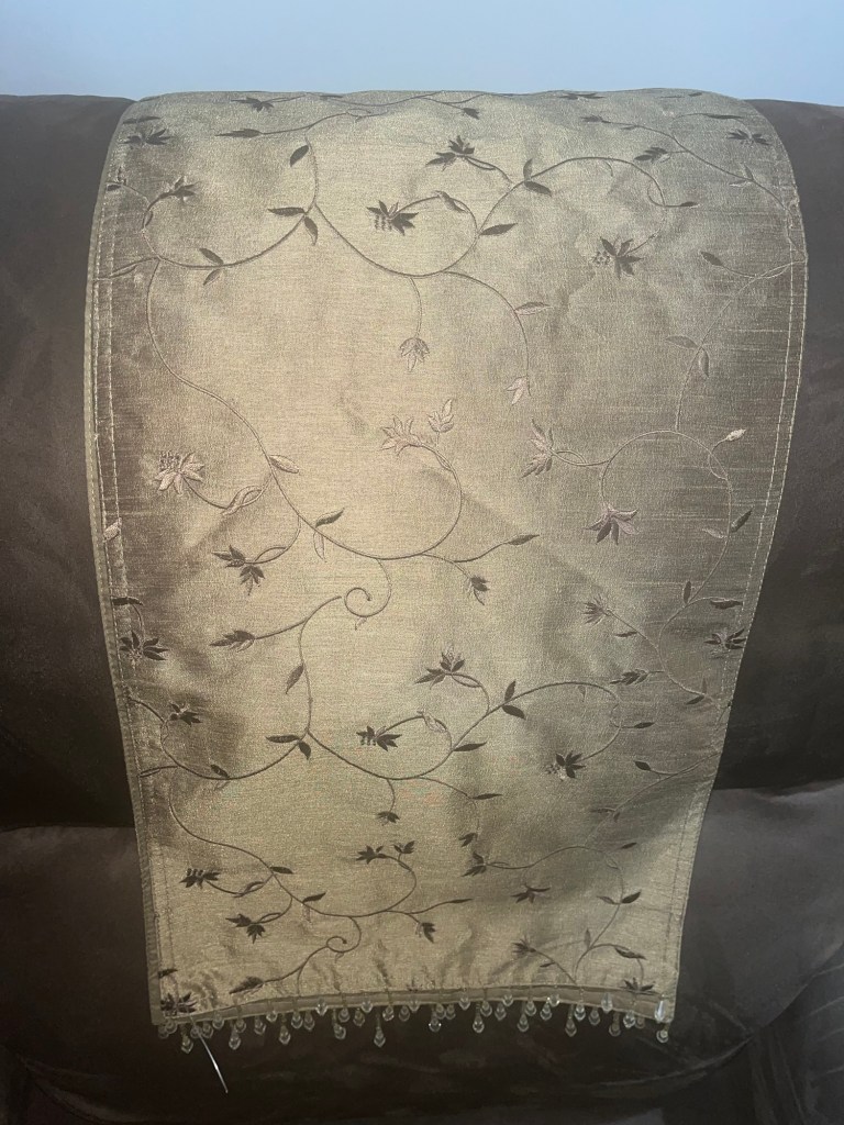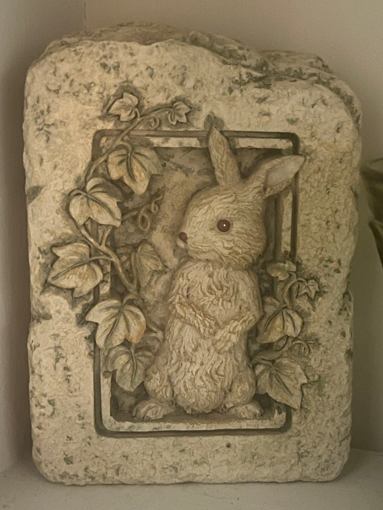 On Saturday I went out to one of my local thrift shops. They were running a 50% everything sale to make room for new items – in fact, they’re now closed until Friday to reset the store. For $8 total I took home a stack of Food & Wine cookbooks (yes, I inadvertently purchased a few duplicates), a table runner with a leafy pattern that to me screams “fall”, an opinionated owl, a faux-stone bunny, and two leaf pins, one in gold and one in autumn orange.