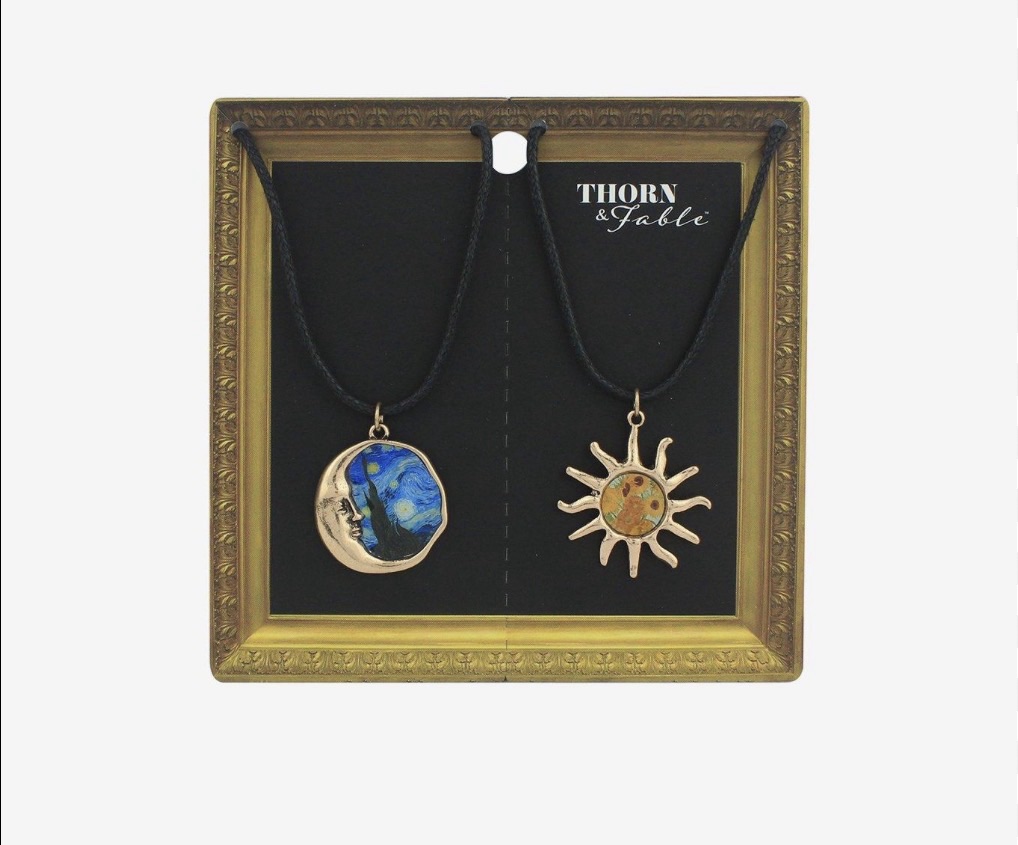 I bought myself a wax cande warmer. Krystal and I did shopping for each other with each other; she got me Umbrella Academy season one, some MCR scrunchies, charms shaped like poisonous things, and we also got a set of Van Gogh-themed necklaces: Starry Night for her and Sunflowers for me.