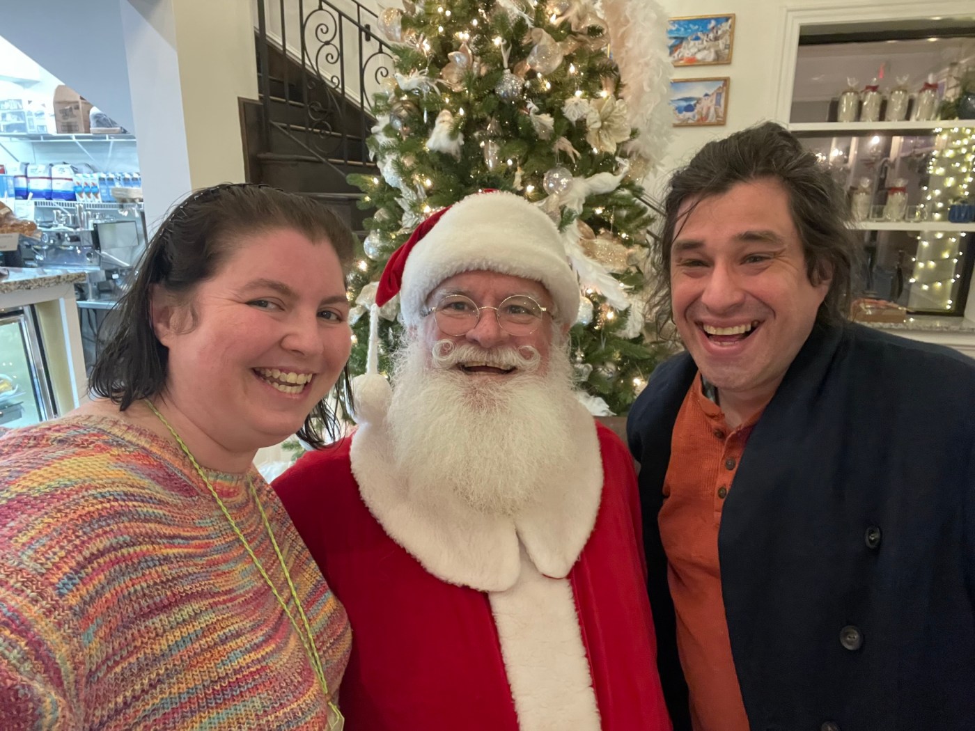 After work Krystal and I went to Famous – I had a gyro and got Stollen for several daysโ snacking and WE SAW SANTA and Santa sang a special North Pole birthday song to me.