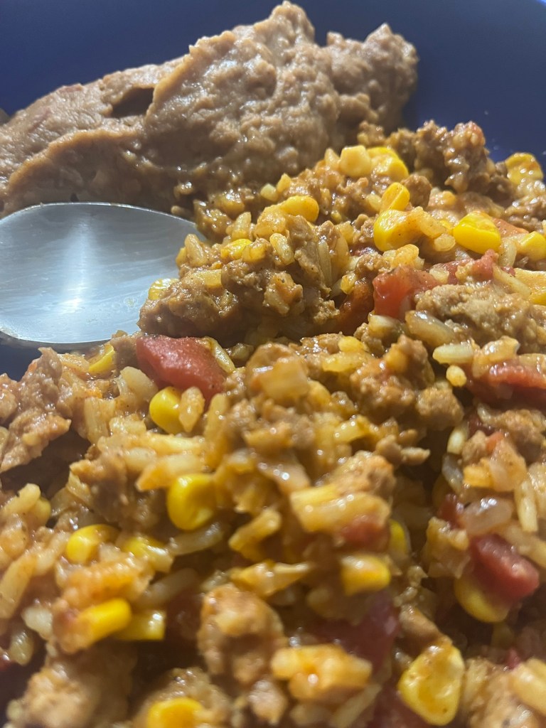 We did meet up with our neighbor (the one who inspired the short story) and went walking (as best we could) and I took over some chorizo and tomato rice one night.