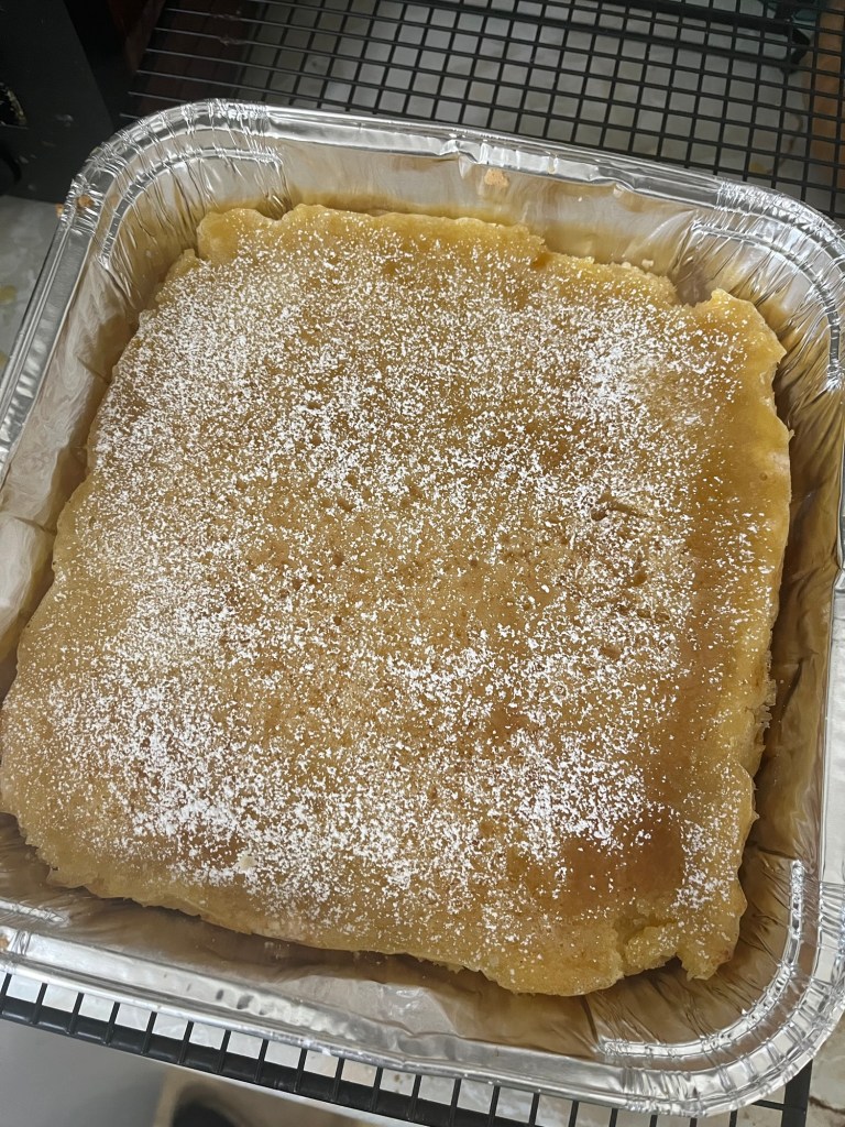 I did decide to do a bit of baking, and I made some lemon bars which turned out really good. Some of my friends even asked for the recipe! Krystal hasn’t commented on them because she does not like lemons and I knew that when I made it, but I really wanted to make some kind of lemony dessert and I think it worked out really well, especially with the lavender infused honey that I made and use in my tea most days.